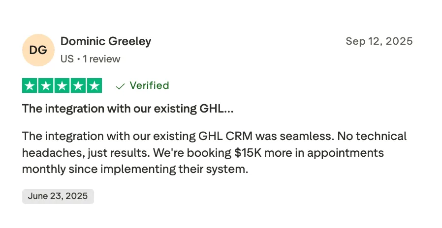 We have native integration with GoHighLevel, but can connect to most CRMs via API connection and a platform such as Make.com, Zapier or BuildShip. We will discuss on the call what's your current tool stack and how we can integrate.